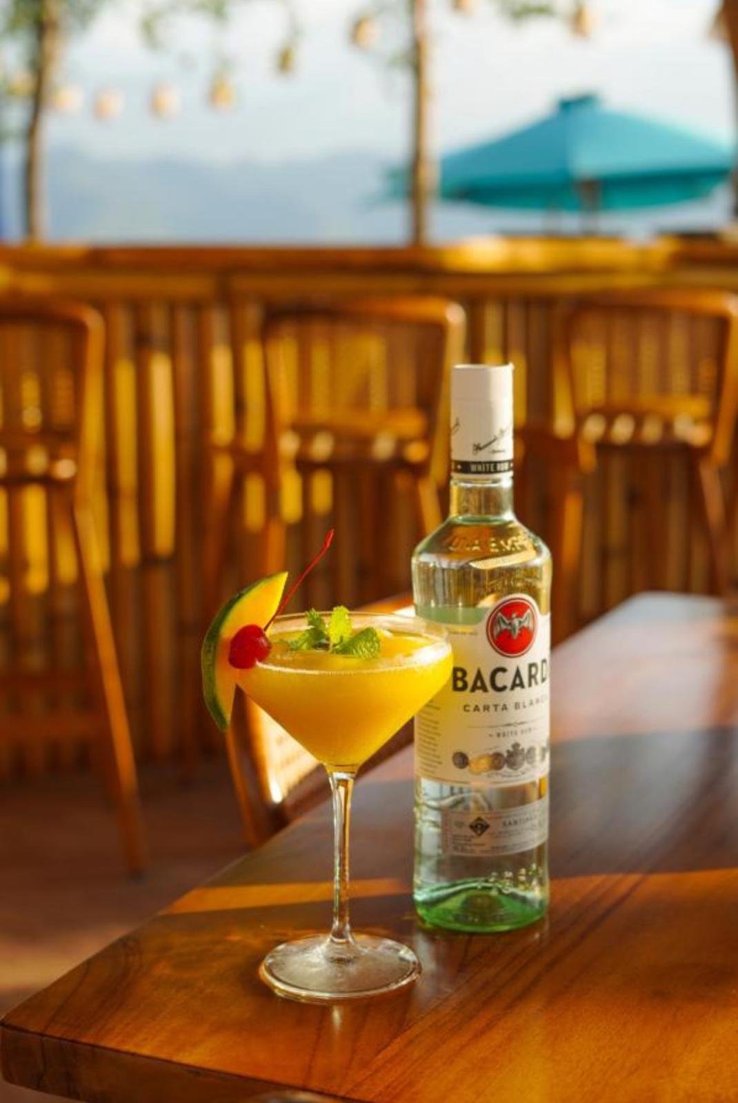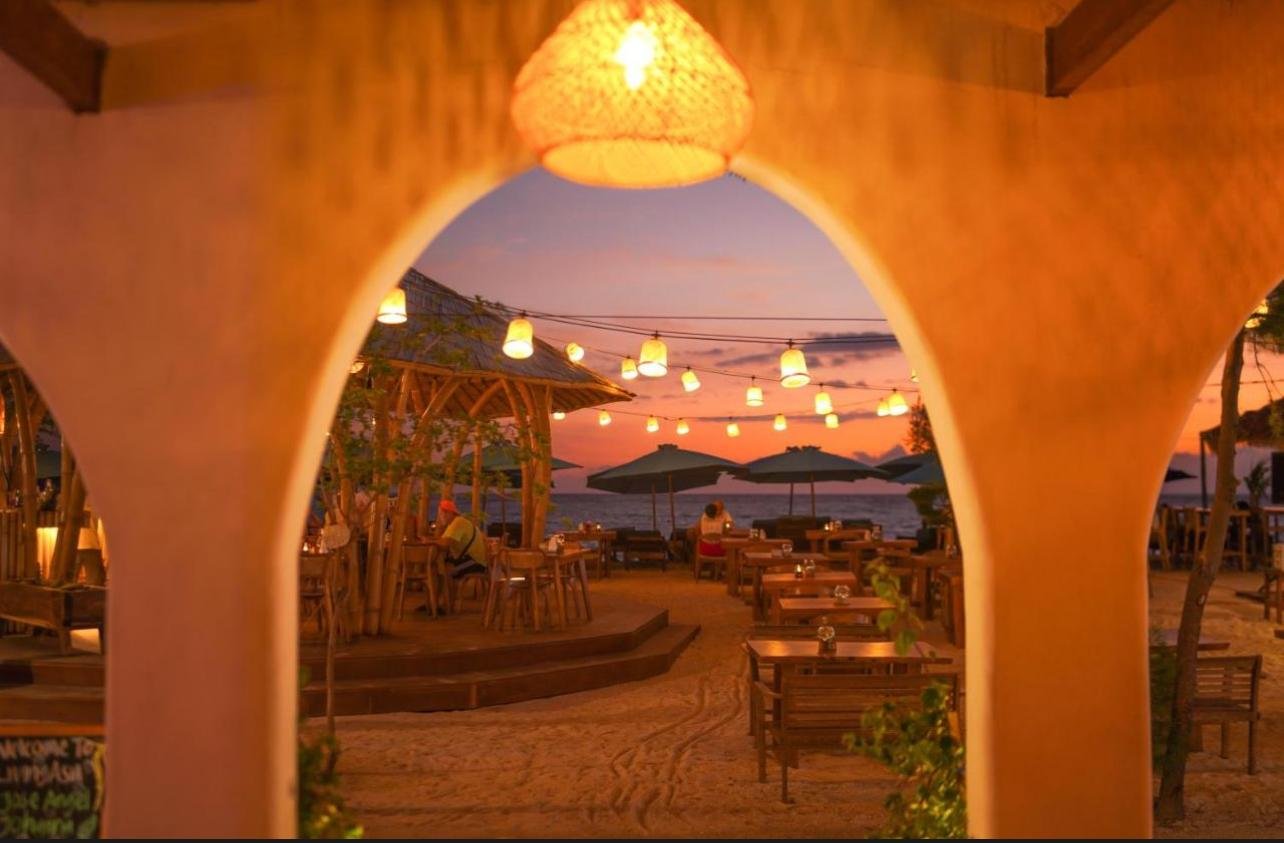 Welcome to Sidibou Bar & Restaurant , where the ocean meets the horizon, and Mount Agung rises in the distance beneath a golden sunset.